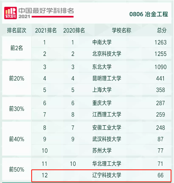 近年来,学校全力加强“双一流”建设,对标建设目标,强化学科特色发展,以化工、冶金学科为龙头,加强内涵建设,统筹学校资源,突出质量成效,不断优化学科专业布局,稳步提升人才培养质量和办学水平,学科建设成效逐步凸显。此次学校3个学科入围“2021软科中国最好学科排名”前50%,其中化学工程与技术学科2021排名72,进入前40%(2019排名78、2020排名87);冶金工程学科2021排名12,首次进入前50%;土木工程学科2021排名52,进入前40%(2020排名64)。