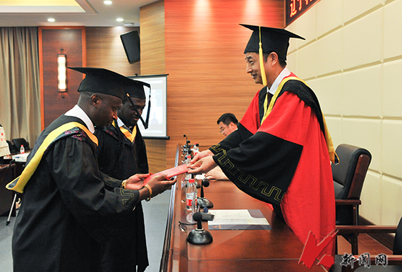 7月16日下午,华体会网页版2021届本科来华留学生毕业典礼暨华体会网页版国际校友联络员聘任仪式在机关楼220隆重举行。校长张志强致辞,并与党委常委、副校长李胜利一同为获得学位的毕业生颁发毕业证、学位证,拨流苏。培养来华留学生的各学院负责同志,毕业生和教师代表参加典礼。