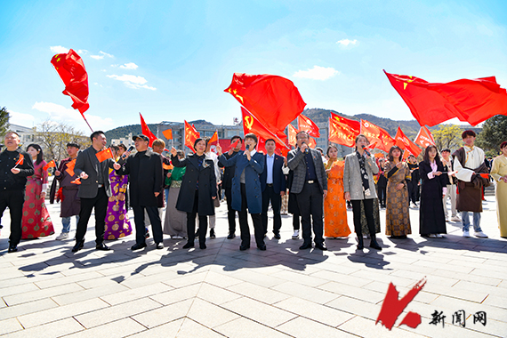 4月13日,华体会网页版师生在学校博雅广场用快闪方式高唱《歌唱祖国》《国家》《走过百年的你》等红色经典歌曲,向中国共产党成立100周年献礼。用激情的演唱落实“辽宁省教育系统献礼建党百年体音美展播活动方案”。校党委常委、副校长孙晓华,校党委常委、宣传部部长张佳亮来到活动现场,与师生一同挥舞红旗,放声歌唱。