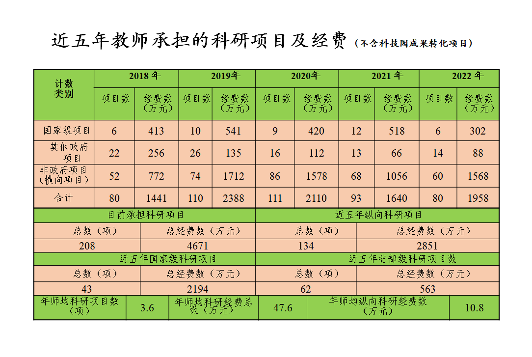 材料与冶金学院近五年教师承担的科研项目及经费
