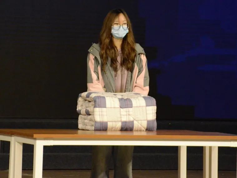 活动伊始介绍了各学院寝室寝风建设,呼吁同学们把文明礼貌教育与宿舍文化建设紧密结合起来,创造一个整洁、卫生、安全、和谐的生活环境,培养良好的生活习惯,使“宿舍小家”更温馨。在叠被子大赛中,各组选手比赛开始后迅速铺平、翻折、捏线,熟练地叠好被子,每一个步骤严谨又快速,行云流水的动作展示出他们超高的熟练度。最终优中选优,评选出了一等奖2名,二等奖2名,三等奖2名。