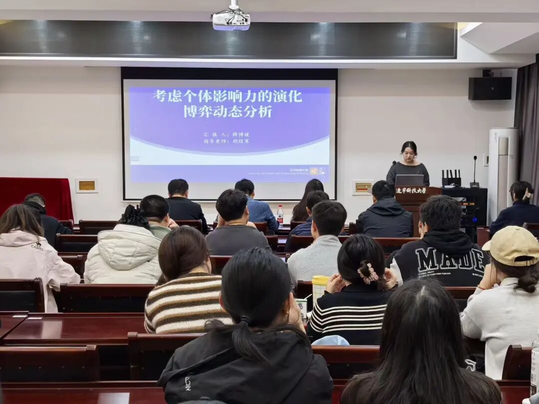 11月1日,理学院于明贤楼B315会议室开展“数理之光”研究生学术报告会。本次报告会由理学院研究生会执行主席唐思磊主持,理学院科研院长王健、理学院教学院长赵健、理学院科研秘书王思涵担任评委。