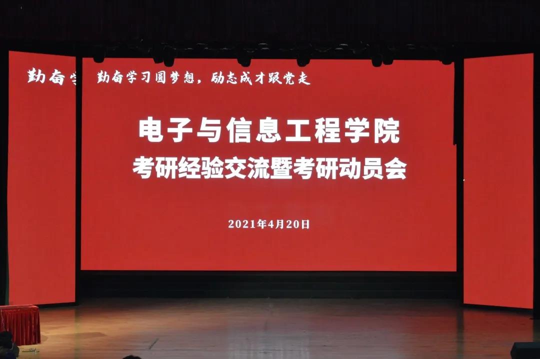 为了进一步提高我院学生的考研热情,明确考研目标,更好地发挥榜样示范以及传帮带作用,4月20日,电信学院考研经验交流暨考研动员会在校礼堂举行。本次活动由电信学院学办主任于家鹏主持,出席本次活动的有电信学院学生工作负责人王会立,2019级、2020级辅导员以及电信学院2019级、2020级全体学生。
