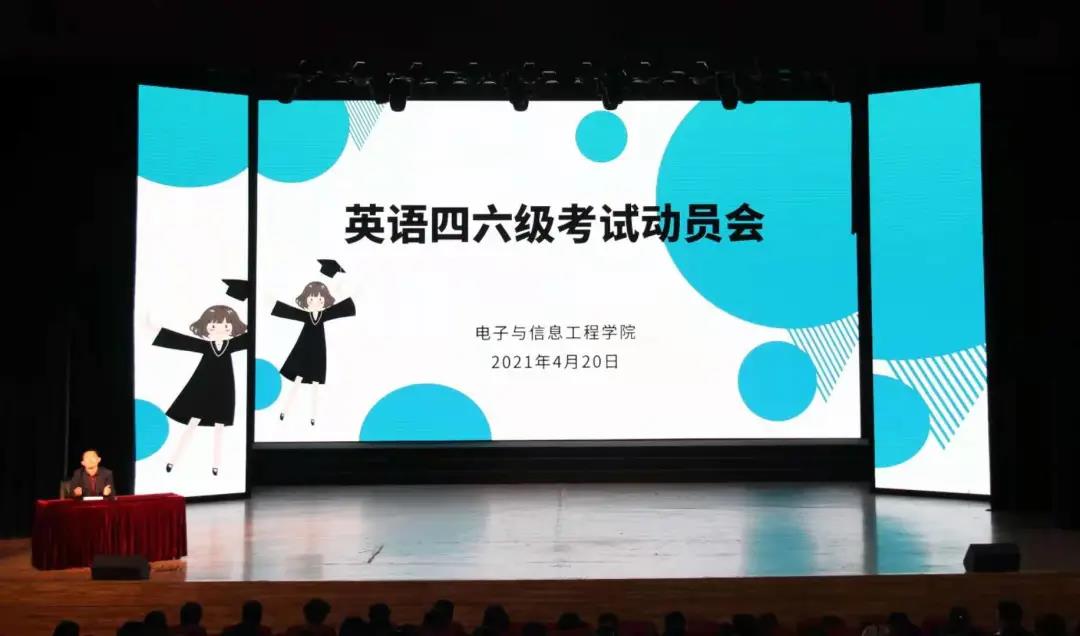 在临近大学生英语四六级考试之际,为帮助同学们端正考试态度,积极备考。4月20日,电信学院于校礼堂举办英语四六级考试动员会。电信学院学生工作负责人王会立主讲,电信学院2019、2020级全体本科生参加。