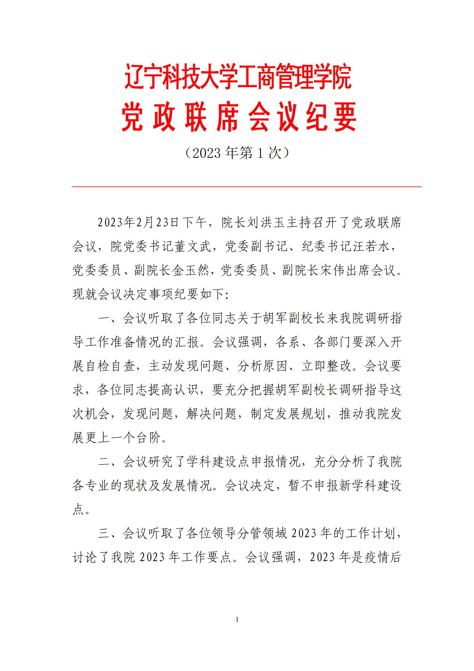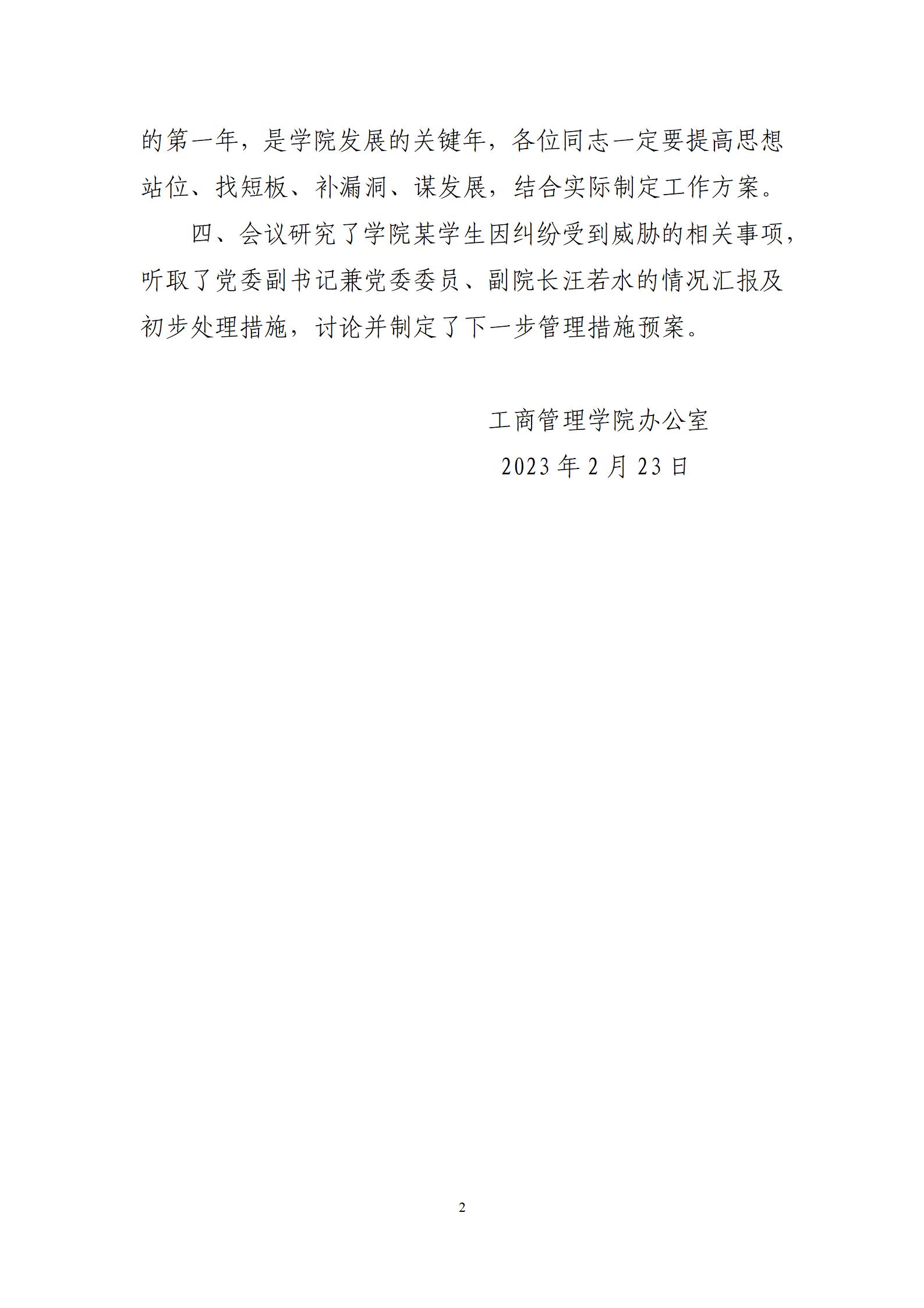 华体会网页版工商管理学院党政联席会议纪要(2023年第1次)
