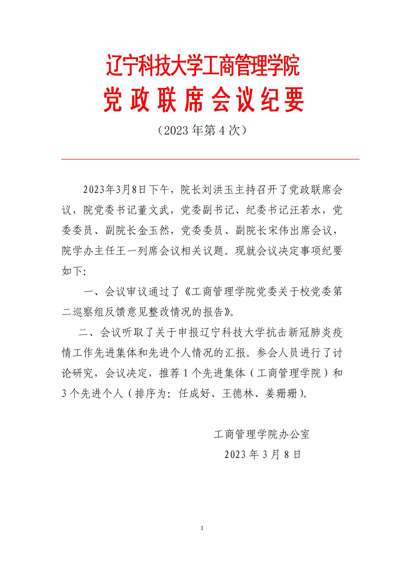华体会网页版工商管理学院党政联席会议纪要(2023年第4次)