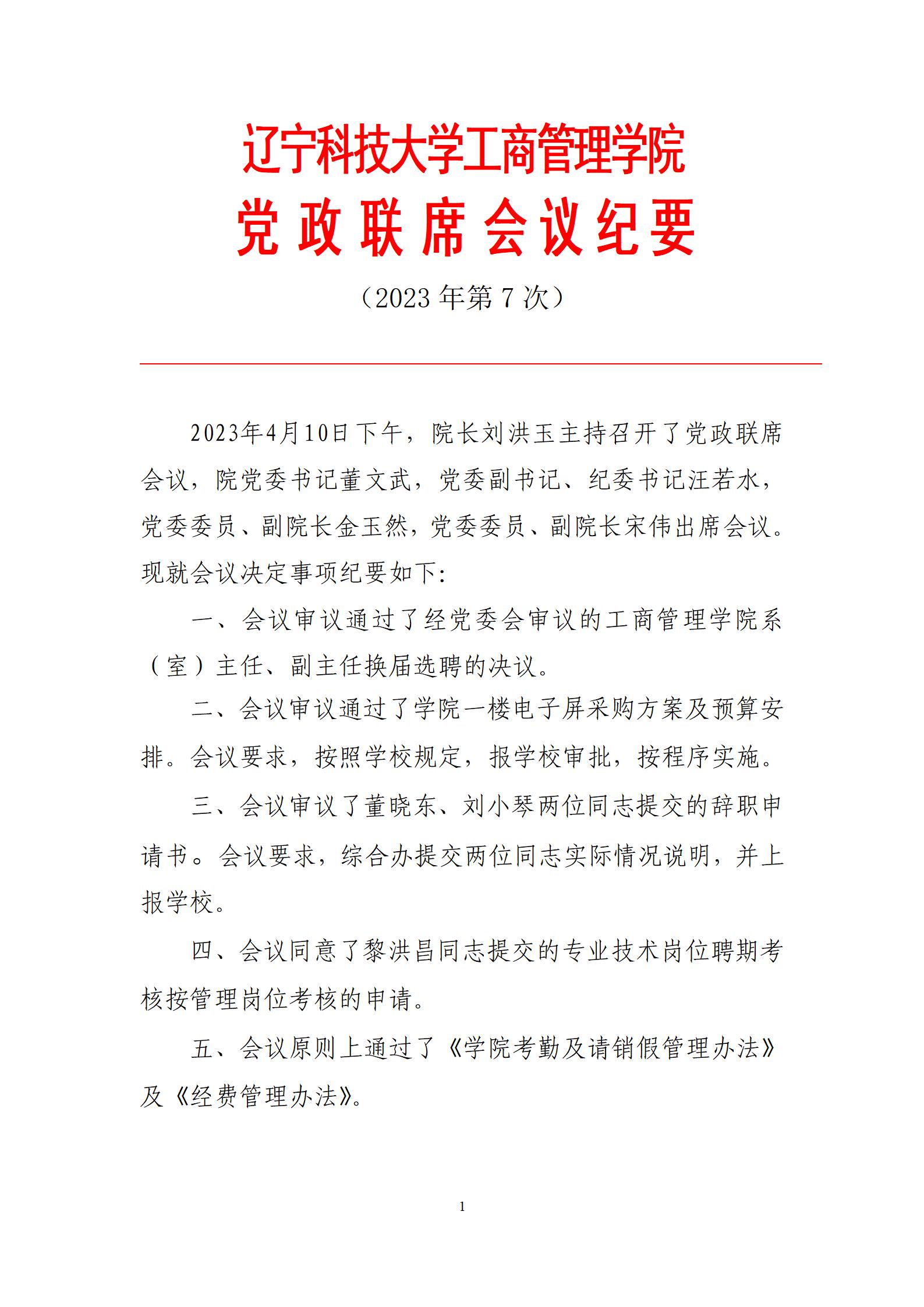 华体会网页版工商管理学院党政联席会议纪要(2023年第7次)