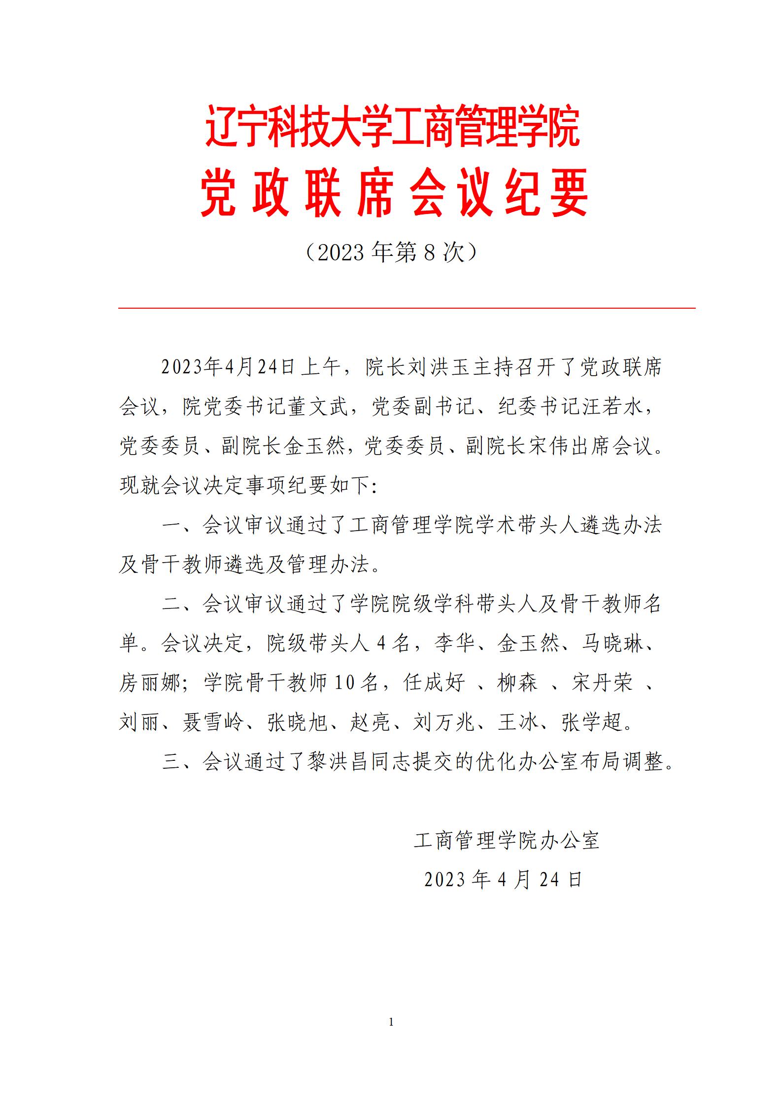 华体会网页版工商管理学院党政联席会议纪要(2023年第8次)