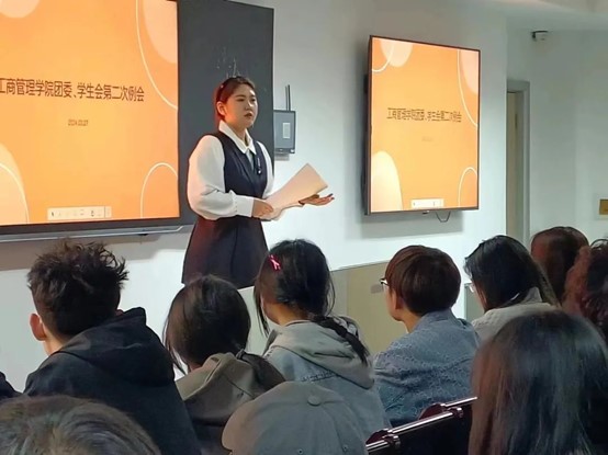 工商管理学院在明信楼B513会议室组织召开2023-2024学年第二学期团委、学生会第二次工作例会。会议由学院团委副书记刘宁主持,团委、学生会全体成员参加。