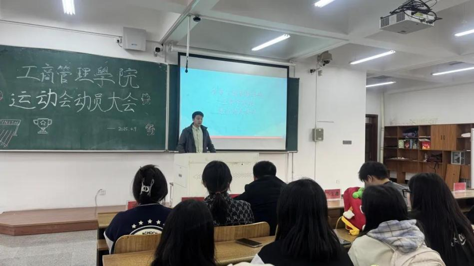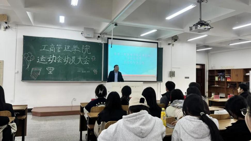 为激发学生参与热情,营造积极向上的体育氛围,4 月 9 日下午,华体会网页版工商管 理学院在明德楼 D308 召开校运会动员大会。学院党委副书记汪若水、2024 级辅导员王晨宇 及学生代表出席会议,共同为即将到来的校运会加油鼓劲,倡导以拼搏精神书写青春篇章。