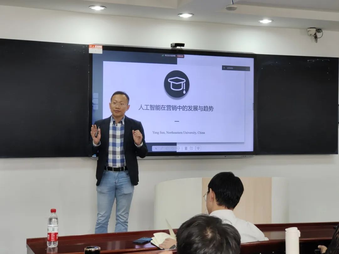 9月18日, 工商管理学院“低碳商业与营销创新”导学团队在明信楼B511举行本学期第一次学术交流活动,由管理学院朱晓林教授主持,邀请了东北大学管理学院孙洋博士和吕林祥博士出席做报告分享,该团队全体研究生通过线上或线下方式参加。此次学术交流活动旨在促进跨学科知识分享,深化对新兴技术在商业领域的应用研究