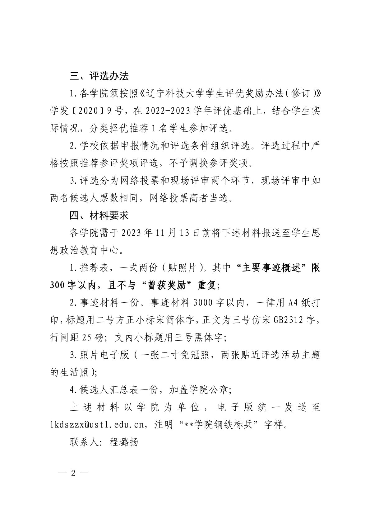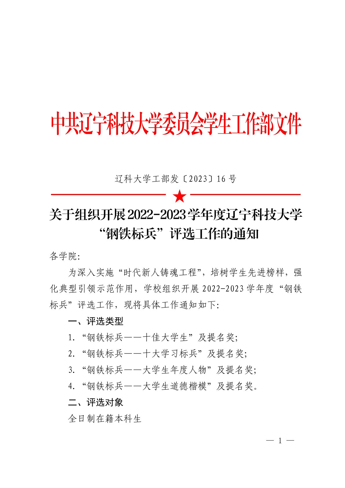 关于组织开展2022-2023学年度华体会网页版“钢铁标兵”评选工作的通知
