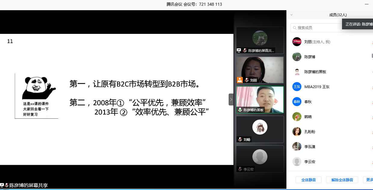 2020年5月9日晚,华体会网页版MBA教育中心第七届管理案例精英赛成功举行。2019级全体参加了此次比赛。MBA教育中心副主任朱晓林教授,校外导师邵岩、吕衍国,管理综合案例课程任课老师李云宏、刘丽担任此次比赛评委。