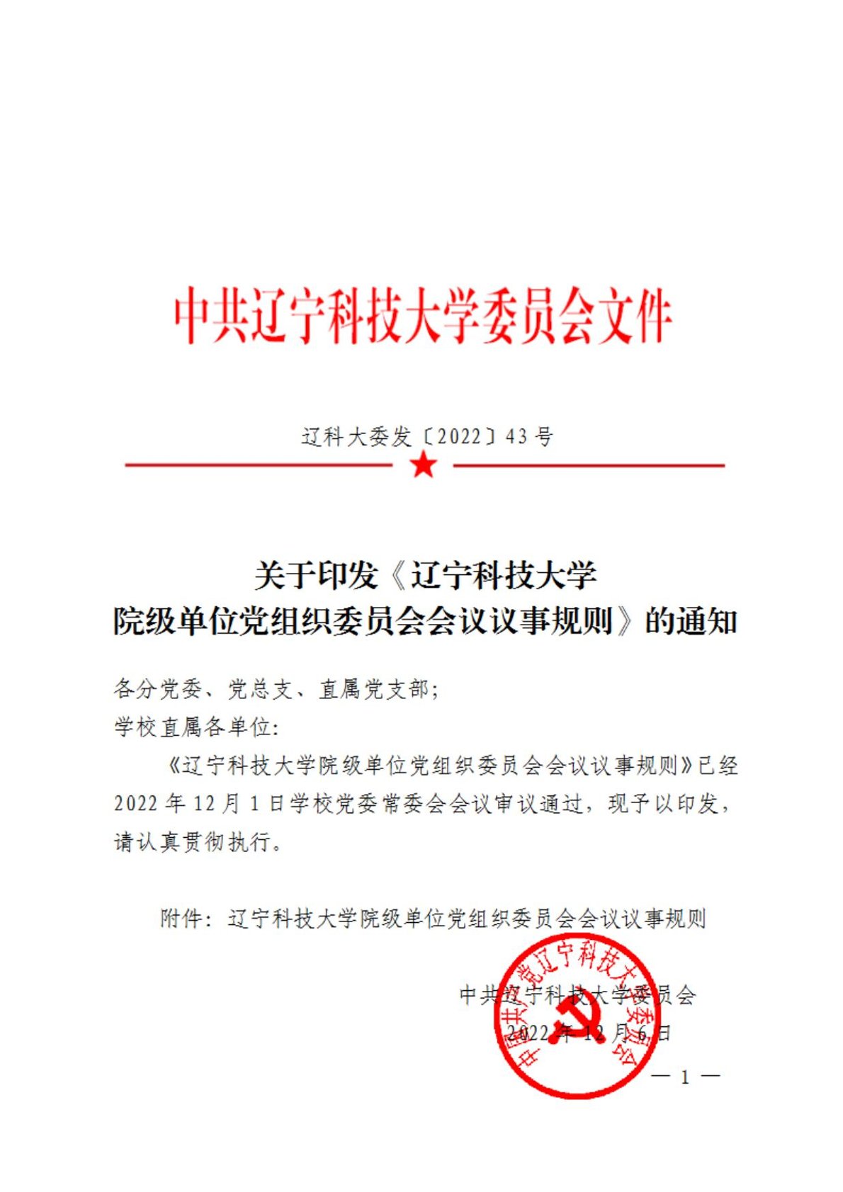关于印发《华体会网页版院级单位党组织委员会会议议事规则》的通知