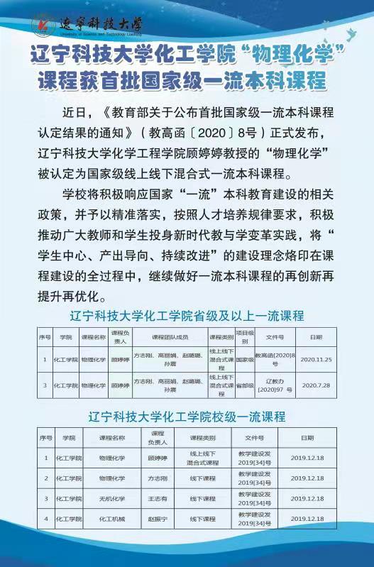华体会网页版化工学院“物理化学”课程获首批国家级一流本科课程