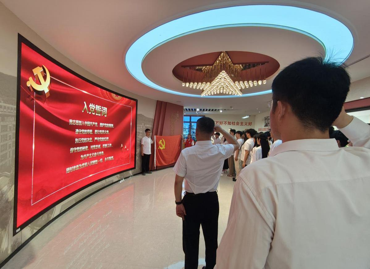 活动最后,全体党员重温入党誓词,牢记作为一名中共党员的光荣使命。学院领导为参加活动党员赠送校徽等精美纪念品。