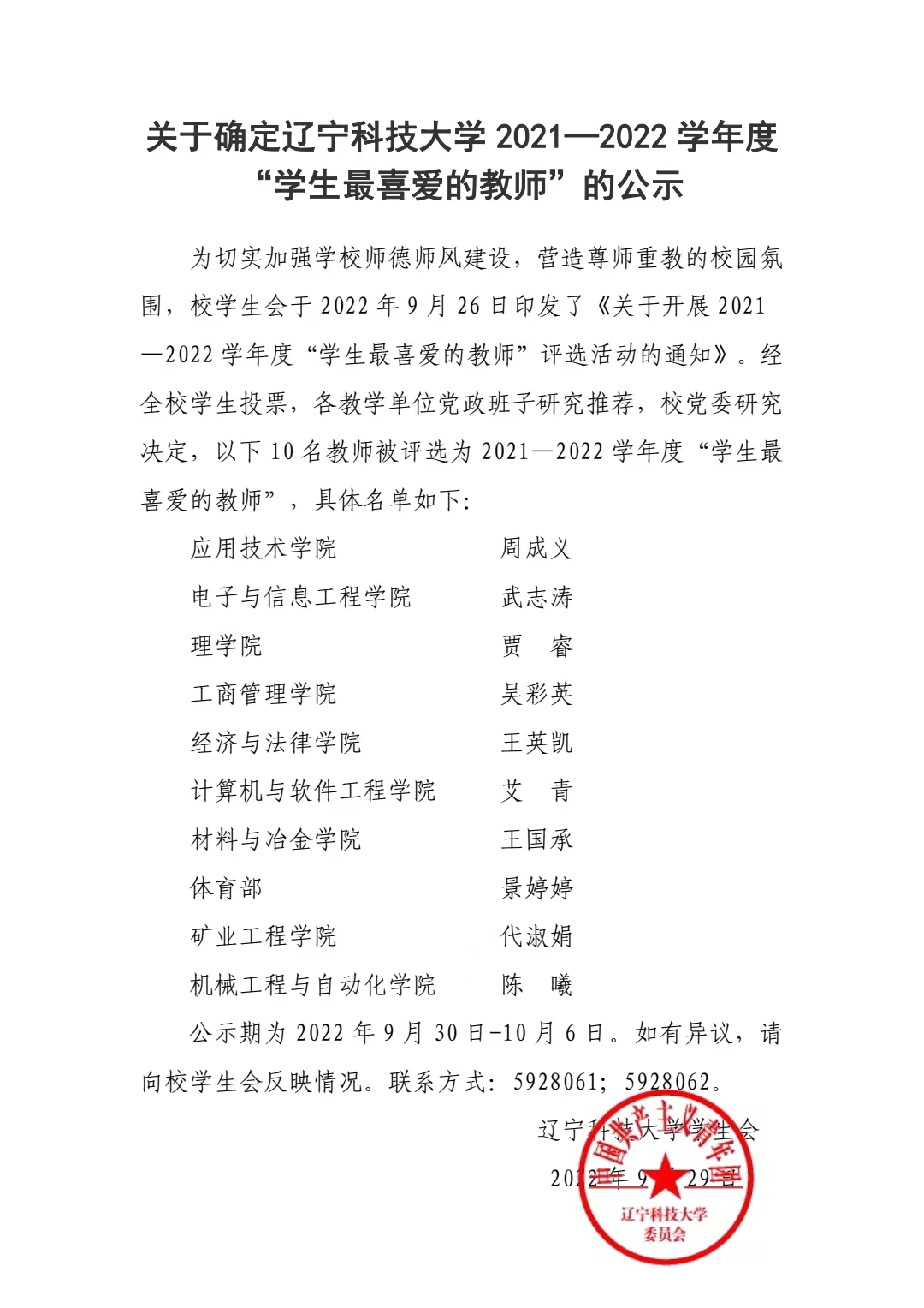 关于确定华体会网页版 2021—2022 学年度 “学生最喜爱的教师”的公示