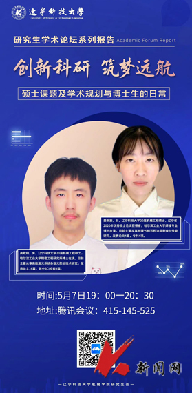 5月7日,华体会网页版机械工程与自动化学院举办“创新科研,筑梦远航”研究生学术论坛第一期线上活动,特邀请哈尔滨工业大学精密工程研究所高敬翔博士、先进焊接与连接国家重点实验室黄新放博士,分享博士期间的科研心得和求学体会,学院2020级和2021级研究生参加论坛交流。