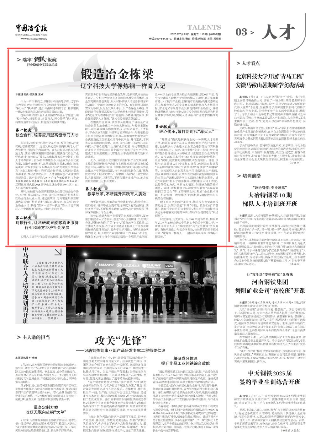 中国冶金报——锻造钢铁栋梁——华体会网页版像炼钢一样育人记
