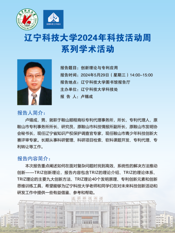 【科技活动周学术预告】创新理论与专利应用