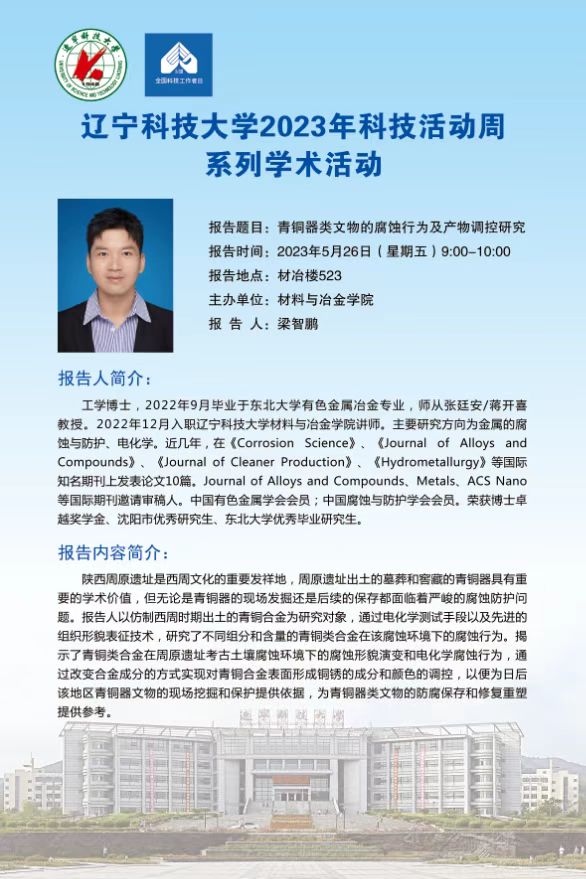 【科技活动周学术预告】青铜器类文物的腐蚀行为及产物调控研究