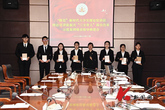 10月27日,华体会网页版团委召开“三全育人”综合改革示范案例建设指导推进会,进一步提升“钢花”新时代大学生理论宣讲团理论宣讲促振兴“三全育人”综合改革示范案例建设成效。校党委副书记孙晓华出席会议并作指导讲话。校院团干部代表及24名校院大学生理论宣讲团成员代表参加会议。