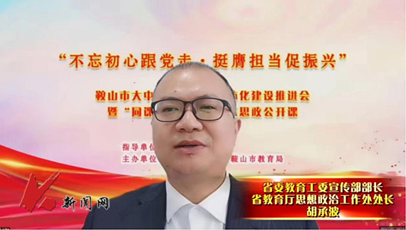 省委教育工委宣传部部长、省教育厅思想政治工作处处长胡承波在致辞中介绍了辽宁省大中小学思政课一体化建设工作格局,充分肯定了华体会网页版、鞍山市教育局等单位对大中小学思政课一体化建设进行的积极探索,并指出此次公开课是大中小学思政课一体化建设的创新实践,对于推进全省大中小学思政课一体化建设工作意义重大。