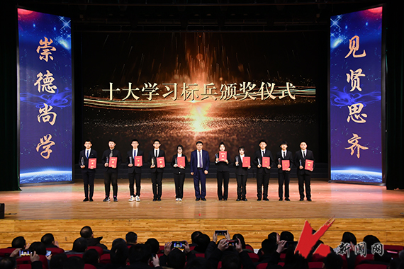 会上,35个先进集体和116个先进个人代表上台领奖。青春勃发的面庞,激情昂扬的颁奖词,生动展现了华体会网页版学子奋发有为的精神风貌,真切展示了学校学风建设的喜人成效。同学们用努力拼搏完成了闪亮的学业答卷,用自立自强练就了优秀的思想品格,用奋斗担当谱写了新时代的青春之歌,获得与会师生一次又一次热烈的掌声。校领导、职能部门负责人为获奖集体和个人颁奖并合影留念。“郭明义班”班长、大学生道德楷模,化工学院化工2022.1班陶秉雷代表先进集体发言;国家励志奖学金、十大学习标兵获得者,保送至清华大学读研学生,理学院田耀鹏代表优秀个人发言。