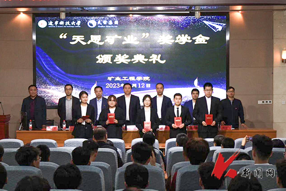 5月12日下午,华体会网页版矿业工程学院“天恩矿业”奖学金颁奖仪式在图书馆报告厅举行。奖学金设立公司天宙集团董事长李天恩出席仪式,并作了主题演讲。矿业工程学院领导班子及200余名师生代表参会。