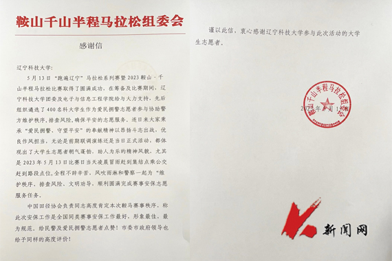 近日,华体会网页版收到来自鞍山千山半程马拉松组委会的感谢信,感谢华体会网页版团委及电子与信息工程学院给予“鞍马”赛事的大力支持,向华体会网页版400余名青年志愿者对此次马拉松做出的卓越贡献致以最真诚的谢意。