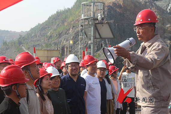 到达矿山后,学院师生全体下车徒步走入采石场,路上,郭明义向大家详细介绍了沿途各种机械设备和特种车辆,带着大家参观工作现场作业。由于天气炎热,再加上前一天下的暴雨,导致矿山的路泥泞难走,但同学们紧紧跟着郭明义的步伐。郭明义还为师生们讲述红军在长征途中发生“半条被子”的红色经典故事。他说,在全面贯彻落实党的二十大精神开局之年,在全党深入开展学习贯彻习近平新时代中国特色社会主义思想主题教育期间,我们满怀喜悦迈进新征程,要始终牢记中国共产党人的初心和使命,自觉站在时代潮头,听从时代召唤,为社会主义现代化国家建设培养出合格的接班人。