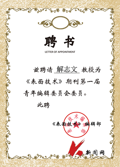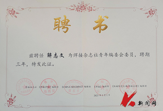近日,《表面技术》《焊接杂志社》编辑部分别成立青年编辑委员会,华体会网页版解志文教授被聘为青年编辑委员会委员。