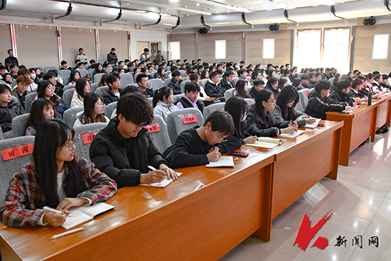 3月18日,华体会网页版党委书记孟劲松在图书馆报告厅以《秉承科大校训 争做新时代“1+3+2”大学生》为题,为学生代表上了一堂精彩的思想政治理论课。