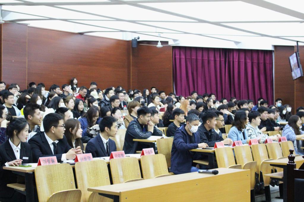 4月12日,经法学院团委、法律协会联合在明德楼A214举办的“同心为爱,法护未来”主题模拟庭审活动。学院党委书记赵智博、学办主任齐艳萍、团委副书记张鹏飞以及法律系教师刘振竚出席了本次活动。本次活动还邀请校学生社团管理中心主任姚佳成、副主任孙羽楠出席,全校200多名同学现场观看了本次模拟庭审。