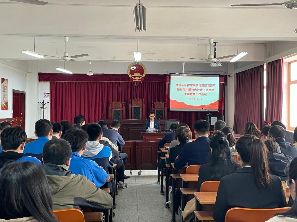 赵智博代表经法学院党委,就深入贯彻落实中央、省委和校党委决策部署要求,扎实开展学习贯彻习近平新时代中国特色社会主义思想主题教育进行了动员和部署。他指出,在全党深入开展学习贯彻习近平新时代中国特色社会主义思想主题教育,是以习近平同志为核心的党中央全面贯彻党的二十大精神、动员全党同志为完成党的中心任务而团结奋斗所作的重大部署,是深入推进新时代党的建设新的伟大工程的重大部署。习近平总书记在学习贯彻习近平新时代中国特色社会主义思想主题教育工作会议上的重要讲话,从新时代新征程党和国家事业发展全局的战略高度,深刻阐述开展主题教育的重大意义和目标要求,对主题教育各项工作作出全面部署,为全党开展主题教育提供了根本遵循,是一篇马克思主义纲领性文献。学院全体党员、干部要深入学习领会、把握精神实质、全面贯彻落实,确保主题教育高质量启动、高标准推进。