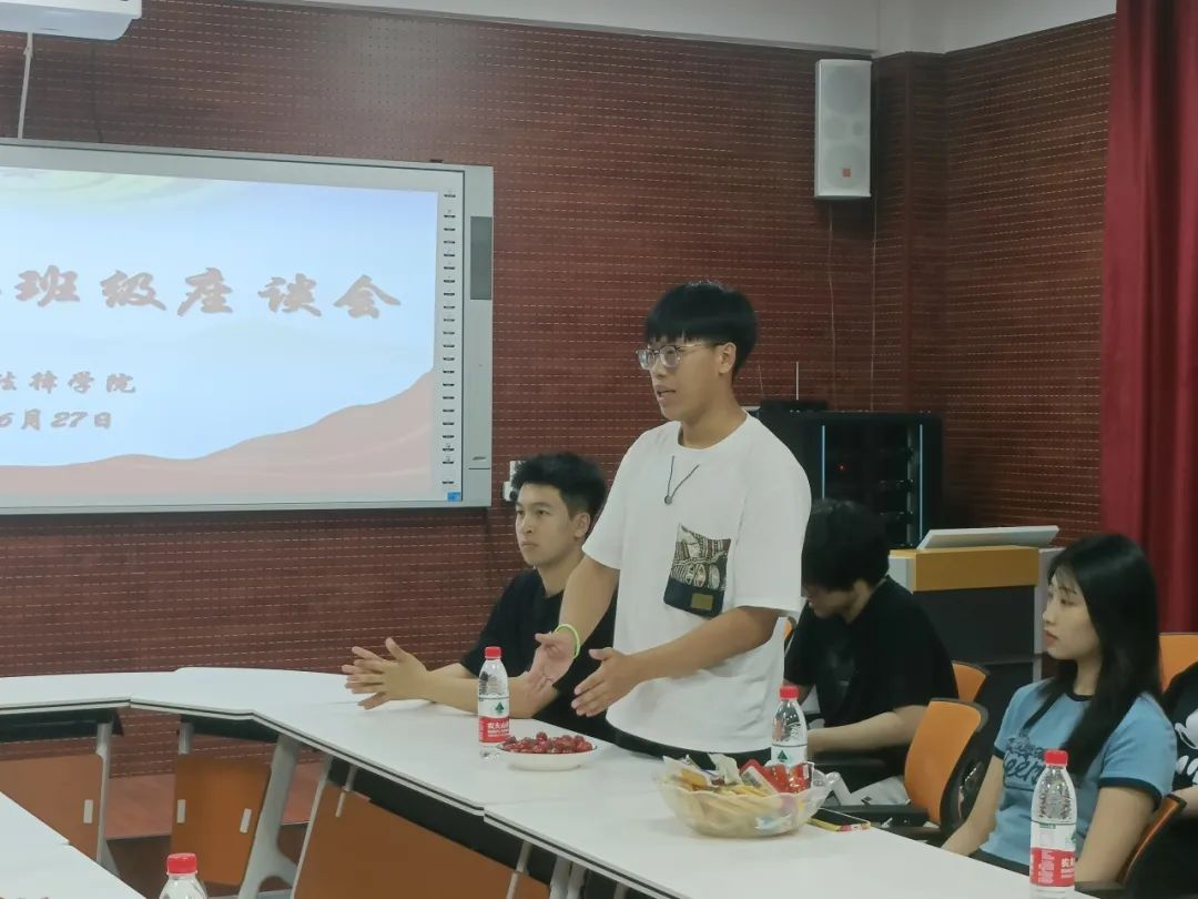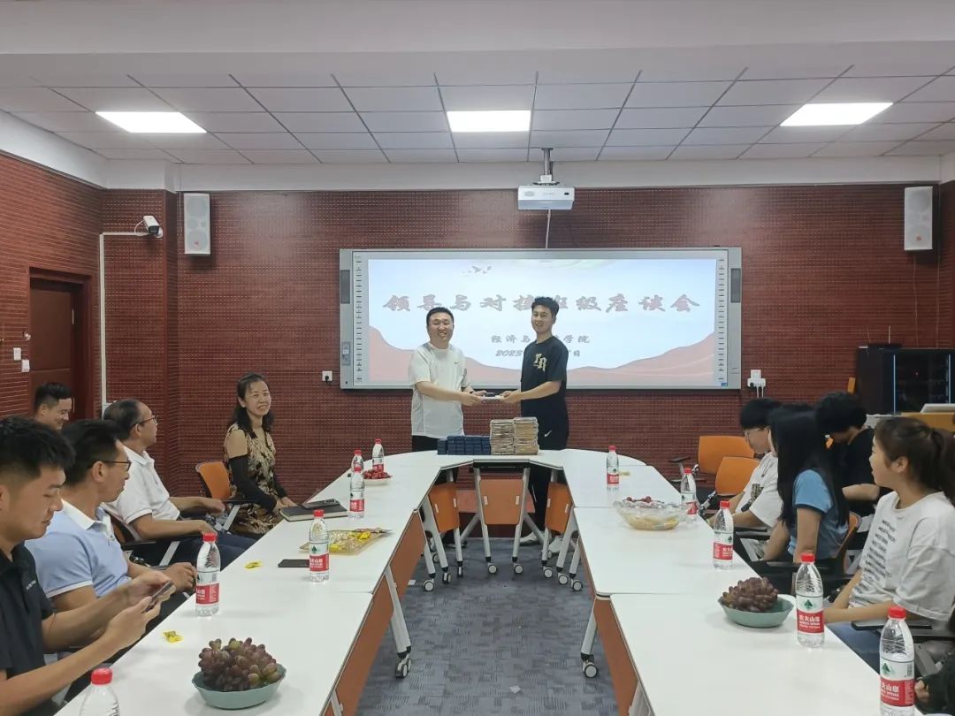 座谈会上,李宁针对同学们考研、考公和求职就业的选择上进行了指导与解析,鼓励同学们尽早做规划,选择适合自己的道路并努力奋斗。对接班级班长曲朕霆、团支书刘玉立、学习委员张铎等结合专业学习、科技竞赛、就业方向和日常生活等方面的问题进行发言并提出意见。李宁对同学们提出的意见进行耐心解答,为同学们排忧解难,现场解决实际问题,对不能立即解决的问题进行梳理汇总,承诺会后逐一进行落实,全力为同学们提供良好的学习和生活环境。李宁对班级良好的学习氛围给予肯定,并赠送学习用品,鼓励同学们早日通过外语等级及相关从业资格考试。