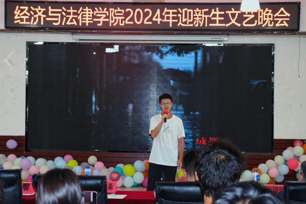 共赏中秋月,人间话团圆。9月17日晚,经法学院于明德楼大学生活动中心举办了以“中秋同国庆 师生共团圆”为主题的迎新生文艺晚会。学院党政领导及辅导员、团学骨干、新生班导生以及全体2024级新生近300人观看了本场演出。