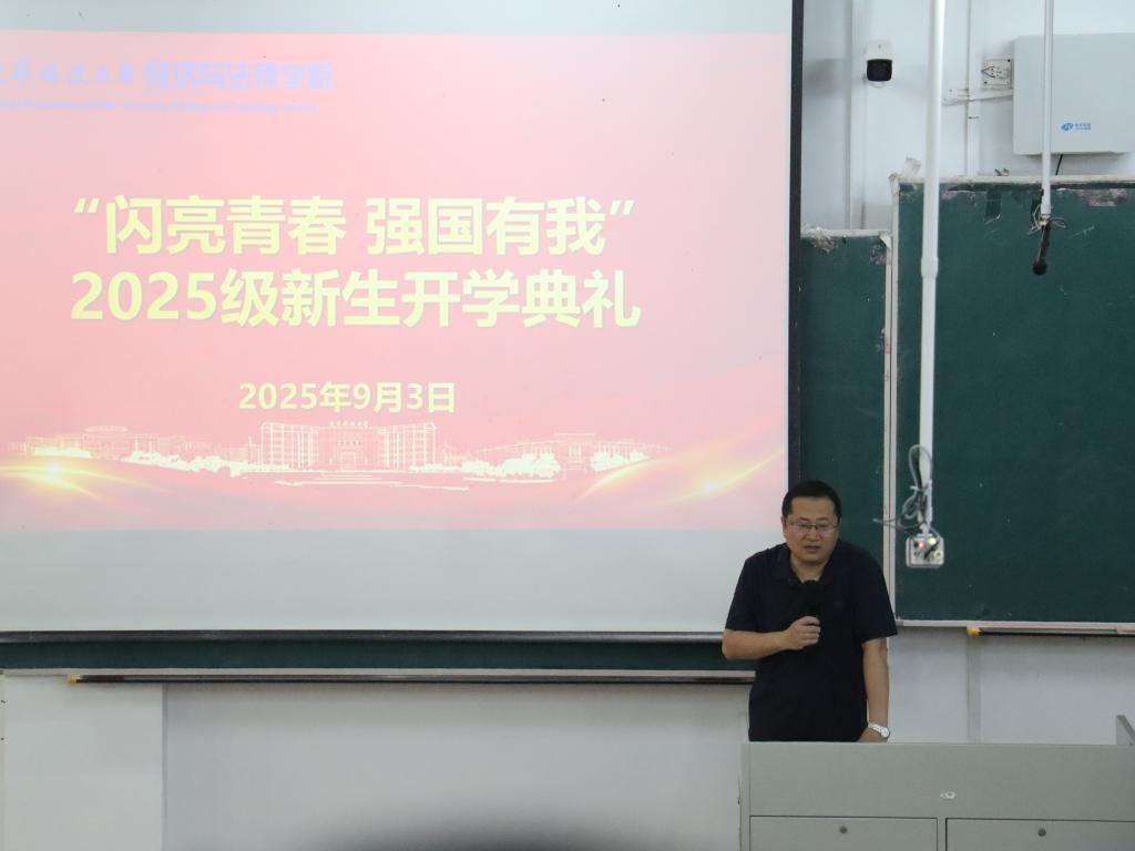 9月3日,经法学院于博学楼A101举办2025级本科新生开学典礼。典礼由学院党委副书记张国华主持,学院领导班子、新生辅导员、班导生及全体2025级新生参加了典礼。