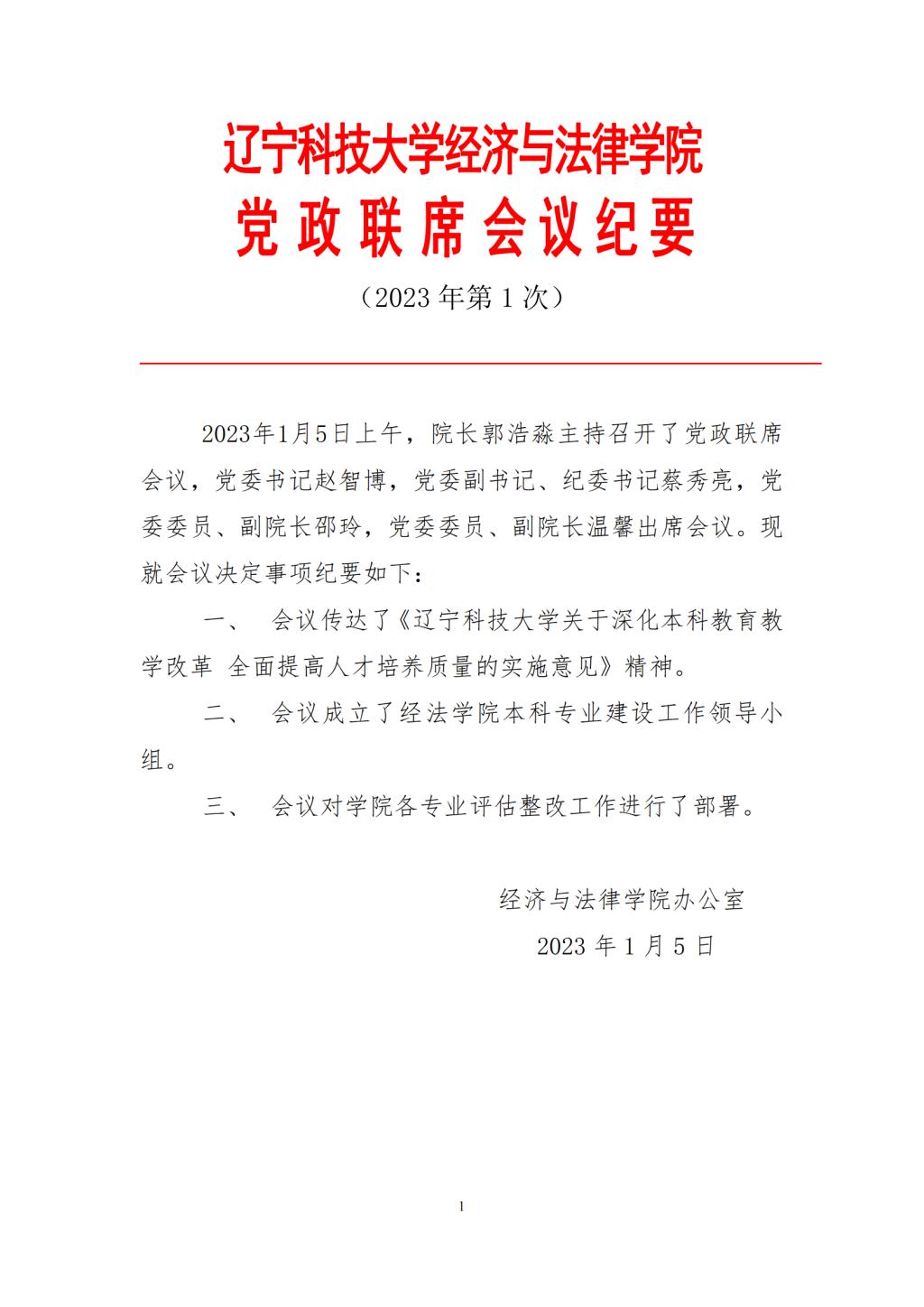 华体会网页版经济与法律学院党政联席会会议纪要(2023年第1次)
