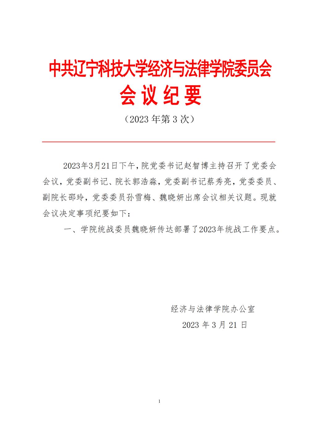 中共华体会网页版经济与法律学院委员会会议纪要(2023年第3次)