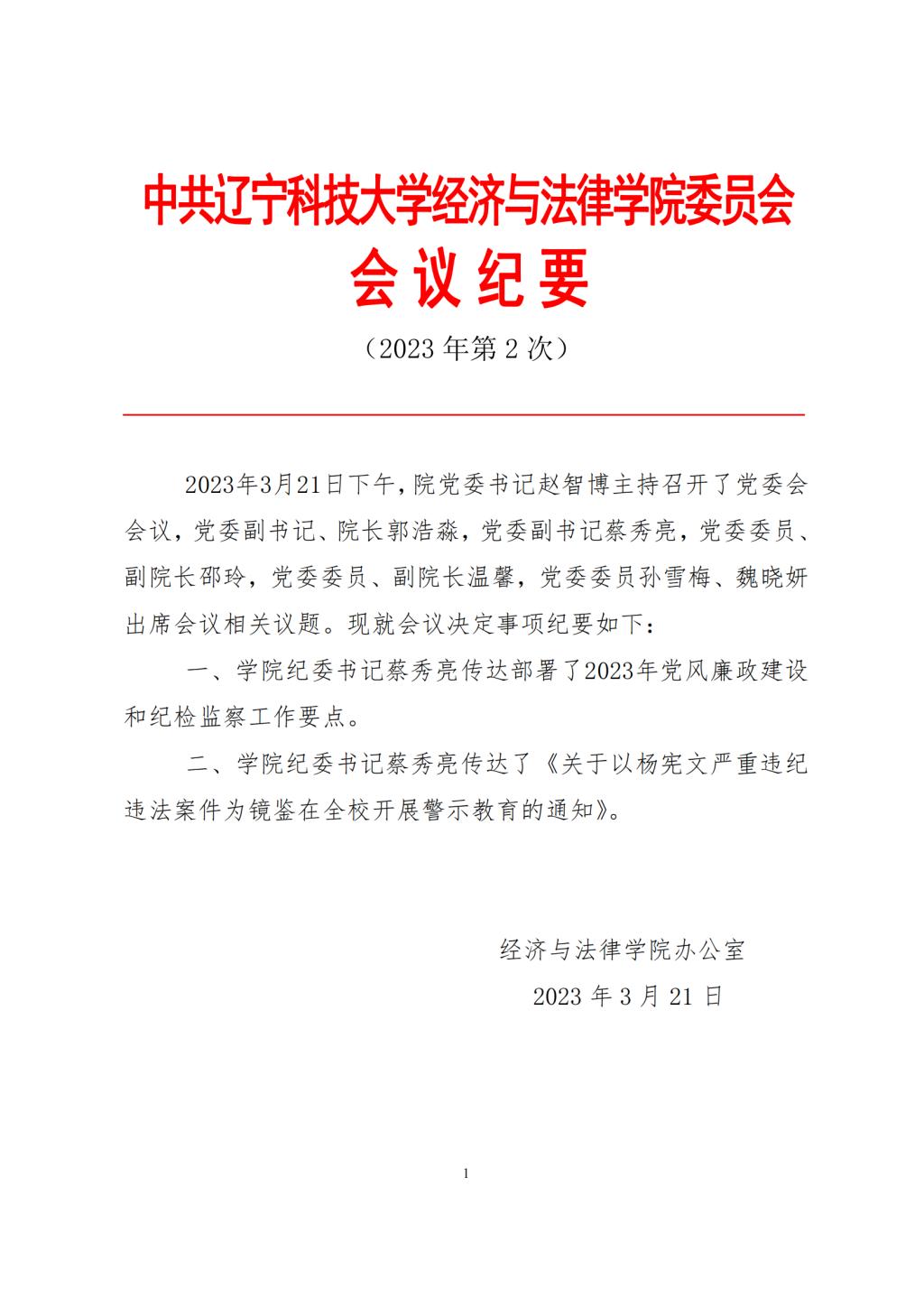 中共华体会网页版经济与法律学院委员会会议纪要(2023年第2次)