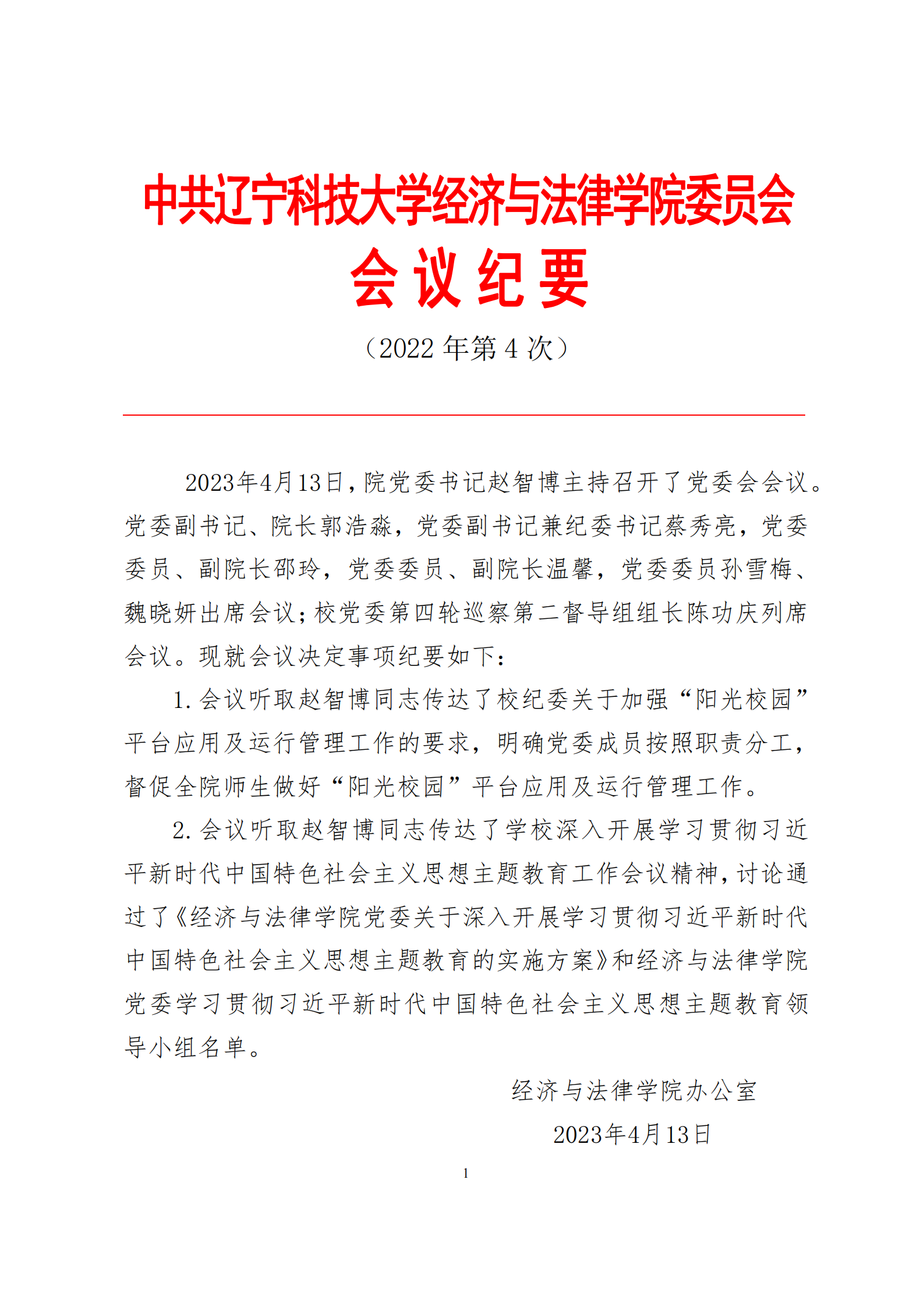 中共华体会网页版经济与法律学院委员会会议纪要(2023年第4次)