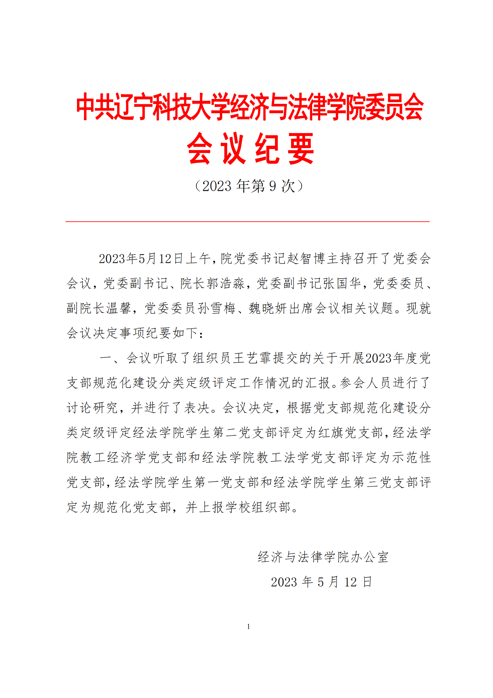中共华体会网页版经济与法律学院委员会会议纪要(2023年第9次)
