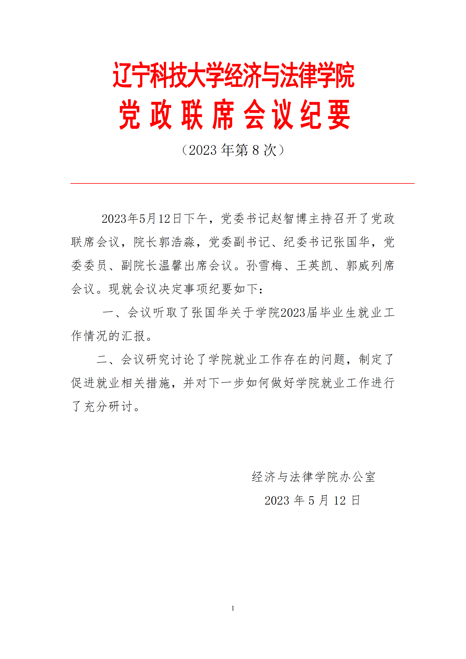 华体会网页版经济与法律学院党政联席会会议纪要(2023年第8次)