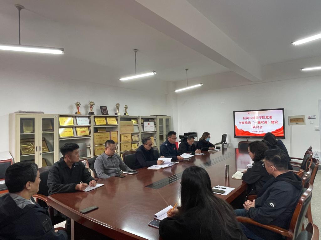 为贯彻落实学校党委关于全面推进“一融双高”建设的指导意见,4月15日,经法学院在博识楼A305召开推进“一融双高”建设研讨会。会议由院长郭浩淼主持,学院党委成员、党支部书记和系主任参加会议。