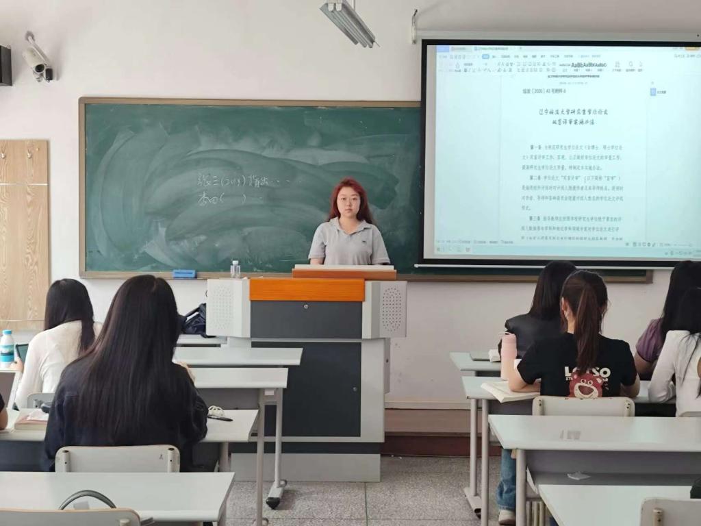 会上,张文婕带领同学们详细解读了研究生院下发的《华体会网页版研究生学位论文质量管理办法》《华体会网页版研究生学位论文双盲评审实施办法》《华体会网页版学术道德规范建设与管理办法》等一系列文件,旨在提醒2022级研究生在论文撰写过程中遵循学术规范,确保论文质量和学术诚信。张文婕指出,盲审是一种公正、客观的评价方式,能够有效减少评审中的主观因素,提高论文评价的科学性和公正性,她提醒同学们在撰写论文时要保持良好的学术操守,杜绝抄袭或数据造假等学术不端行为。