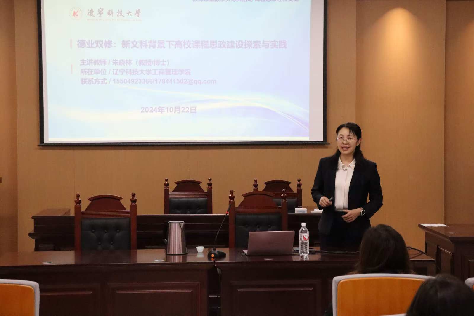 10月22日,经法学院邀请华体会网页版工商管理学院教授朱晓林于博识楼A402模拟法庭作课程思政经验交流报告。