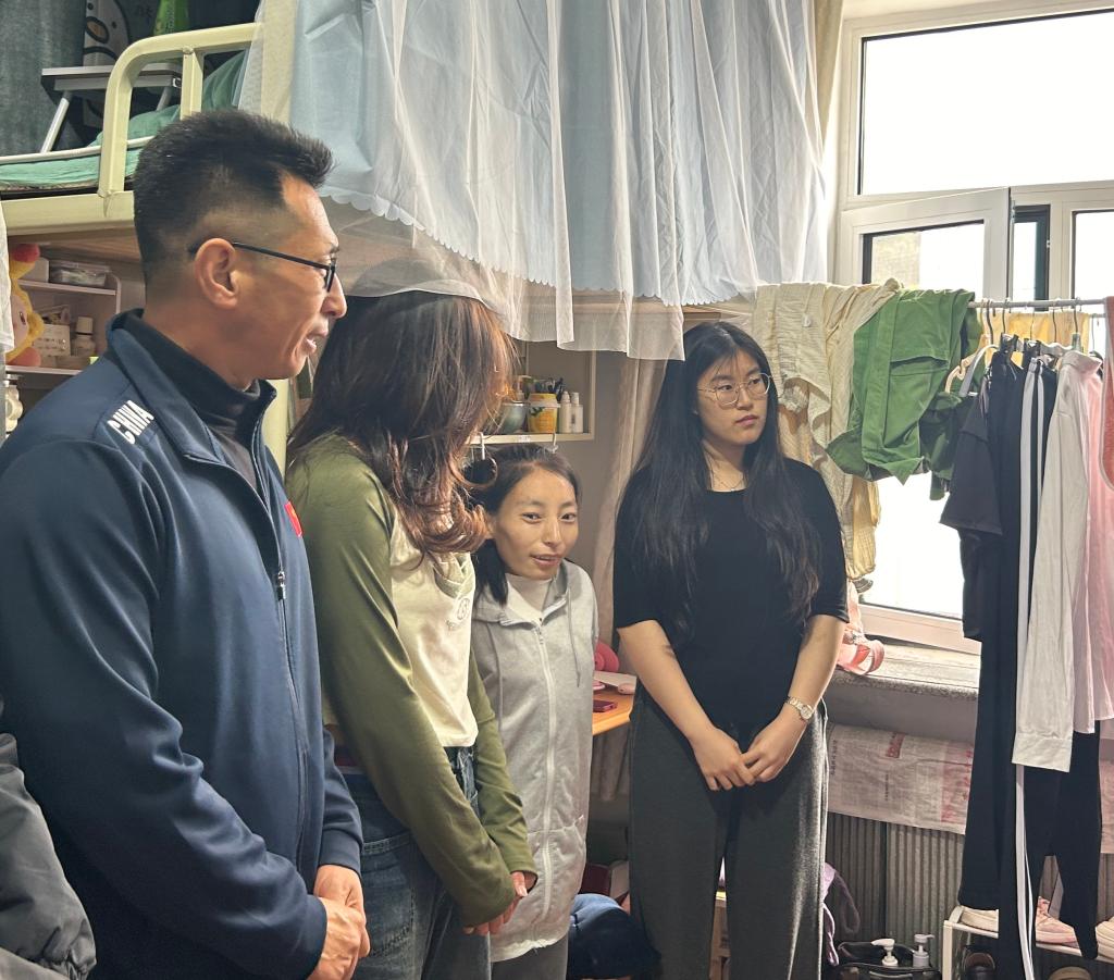 走访期间,辅导员对可能存在的寝室安全问题进行了全覆盖检查,重点排查了使用大功率电器和伪劣老化插座、乱扯电线网线等一系列存在安全隐患的现象,确保及时切除风险点,并叮嘱学生离寝前务必关紧门窗、断电,自觉遵守宿舍管理制度。同时,辅导员对学生是否存在饲养宠物、吸烟以及私自外宿等一系列问题进行了询问与调查,提醒寝室长负起责任,与寝室成员共同打造干净整洁、安全文明的宿舍环境。此外,辅导员还就学生的思想状况、学习生活等方面进行了深入细致的交流,并有针对性地为学生提供了帮助和指导,鼓励同学们养成健康规律的作息习惯,以积极向上的态度面对生活和学习,共同营造良好的寝室氛围。