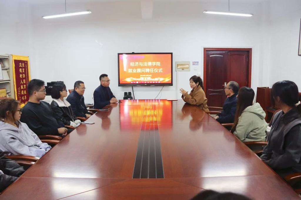 10月24日,经法学院于博识楼A305聘任鞍山市高新技术企业协会常务副秘书长赵红女士为就业顾问。学院党委书记赵智博、院长郭浩淼、委副书记张国华、学办主任李路云及学生代表参加了仪式。