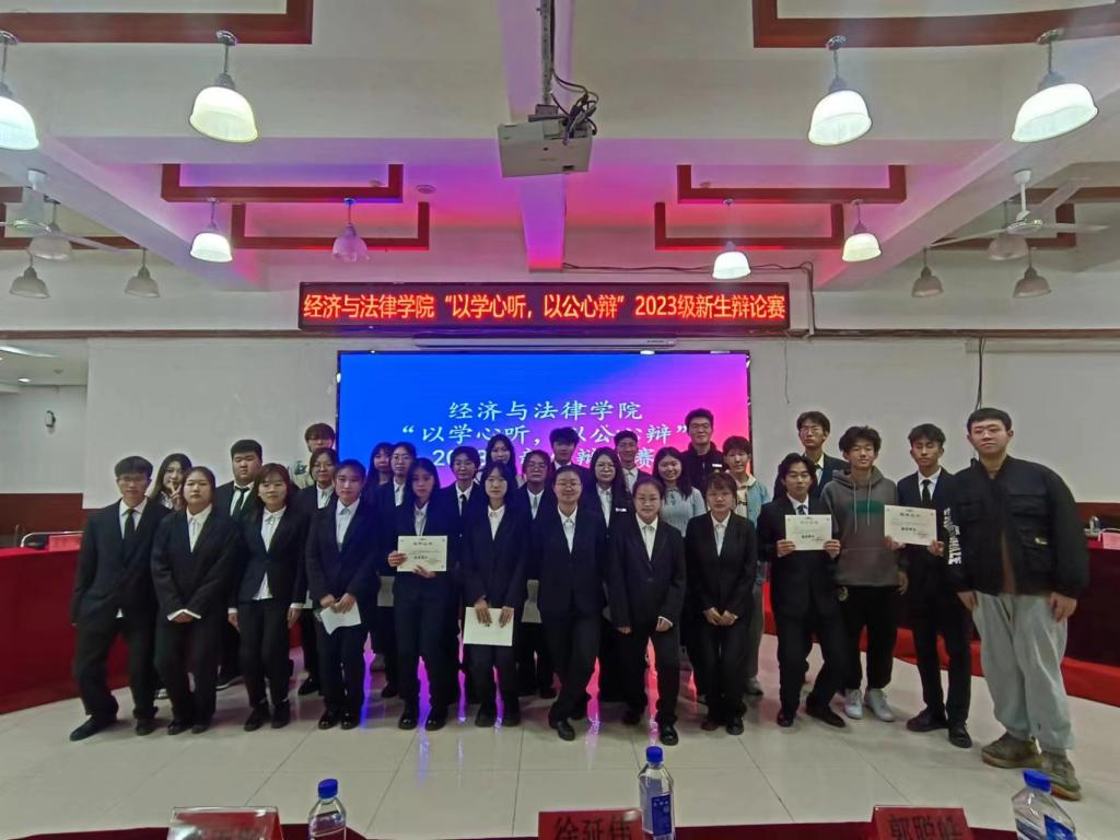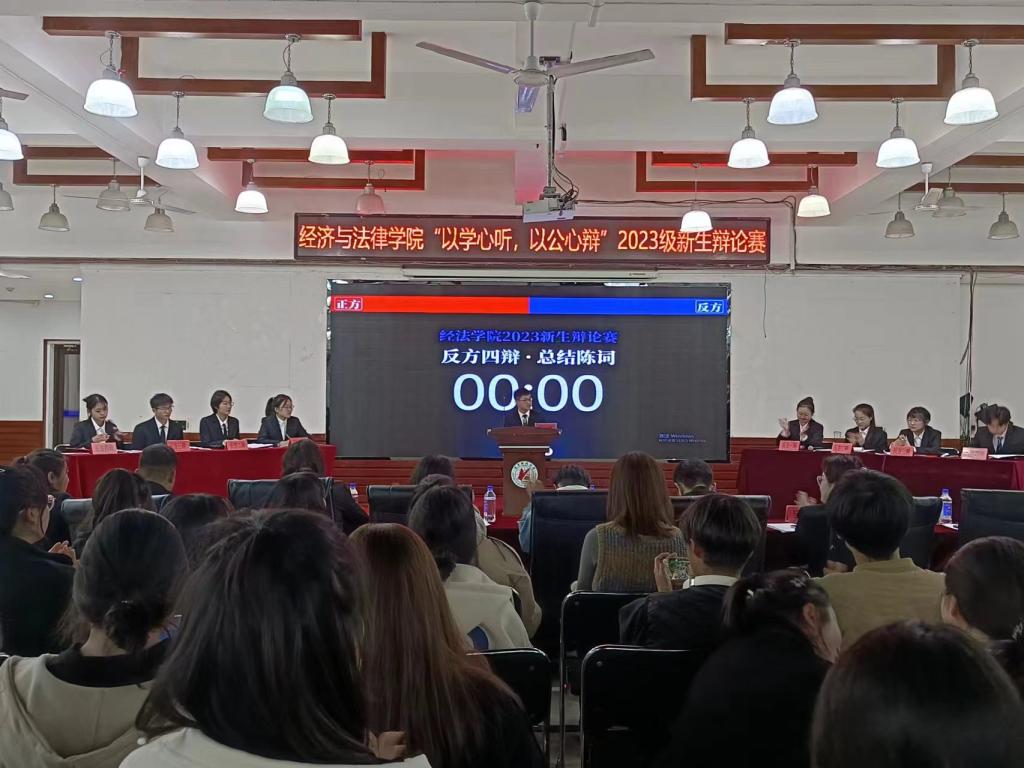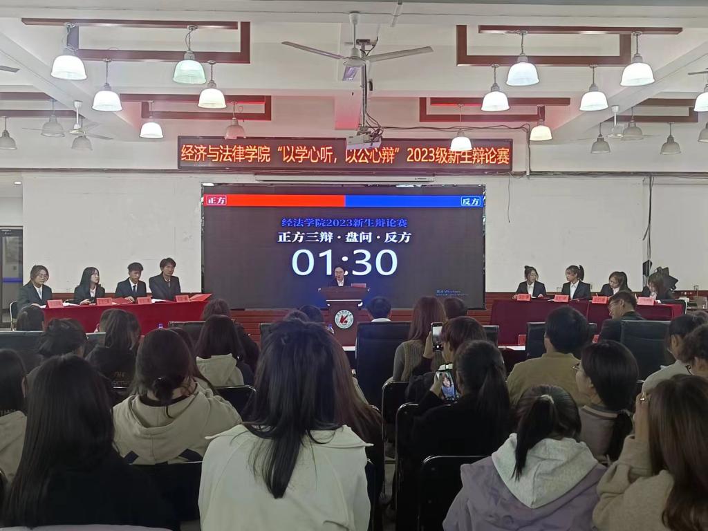 11月2日晚,经法学院于明德楼大学生活动中心举办“以学心听,以公心辩”主题辩论赛。本次辩论赛由金融23-2班白江悦主持,华体会网页版辩论队负责人、思辨社社长徐延伟、经法学院辩论队队长韩雨彤、副队长郭聪皓以及经法学院分团委副书记、学生会主席团成员和各部门负责人出席活动并担任评委,2023级全体学生参加本次活动。